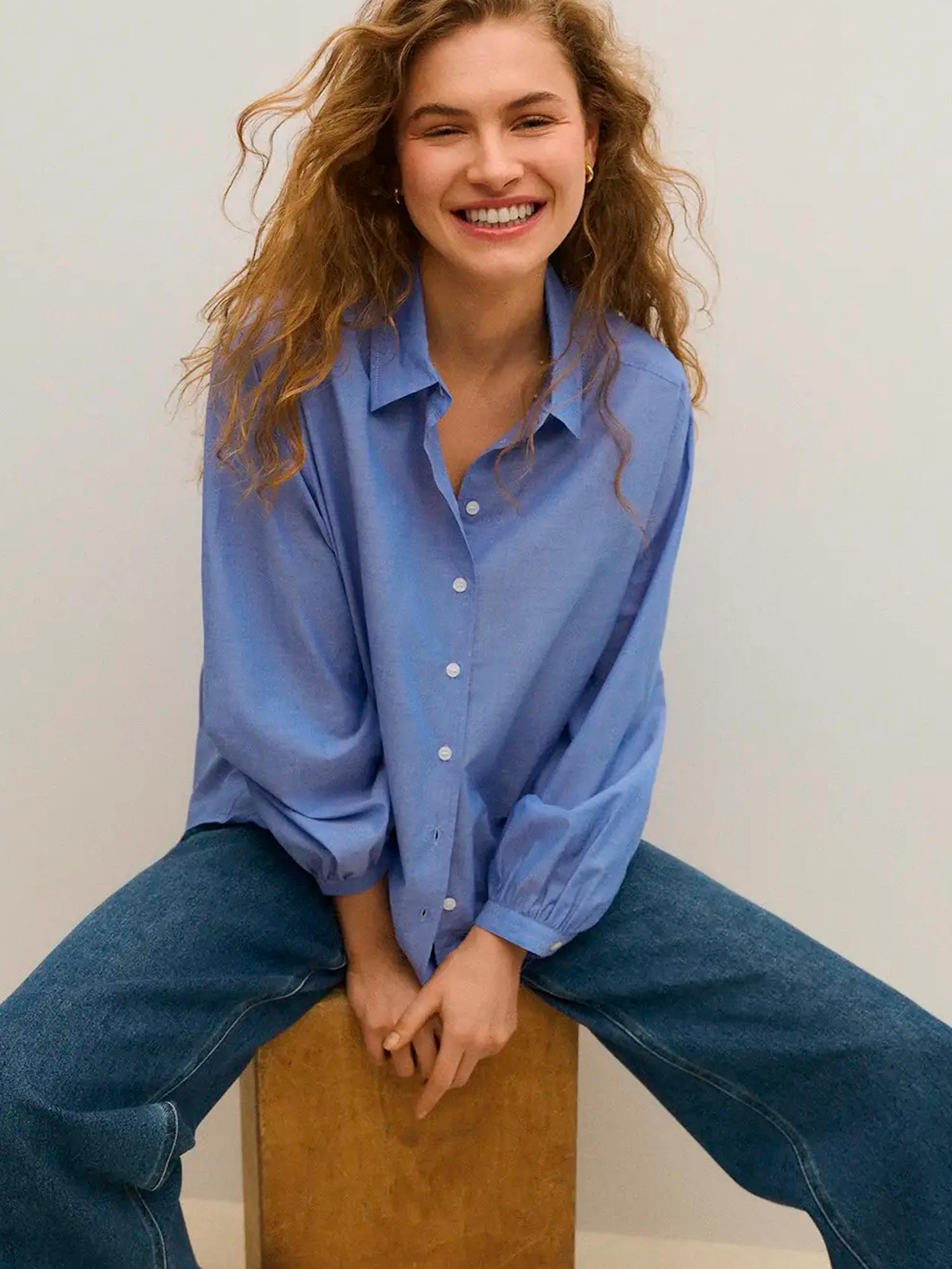 Camisa de 100% de algodón BCI ligero tipo chambray.
