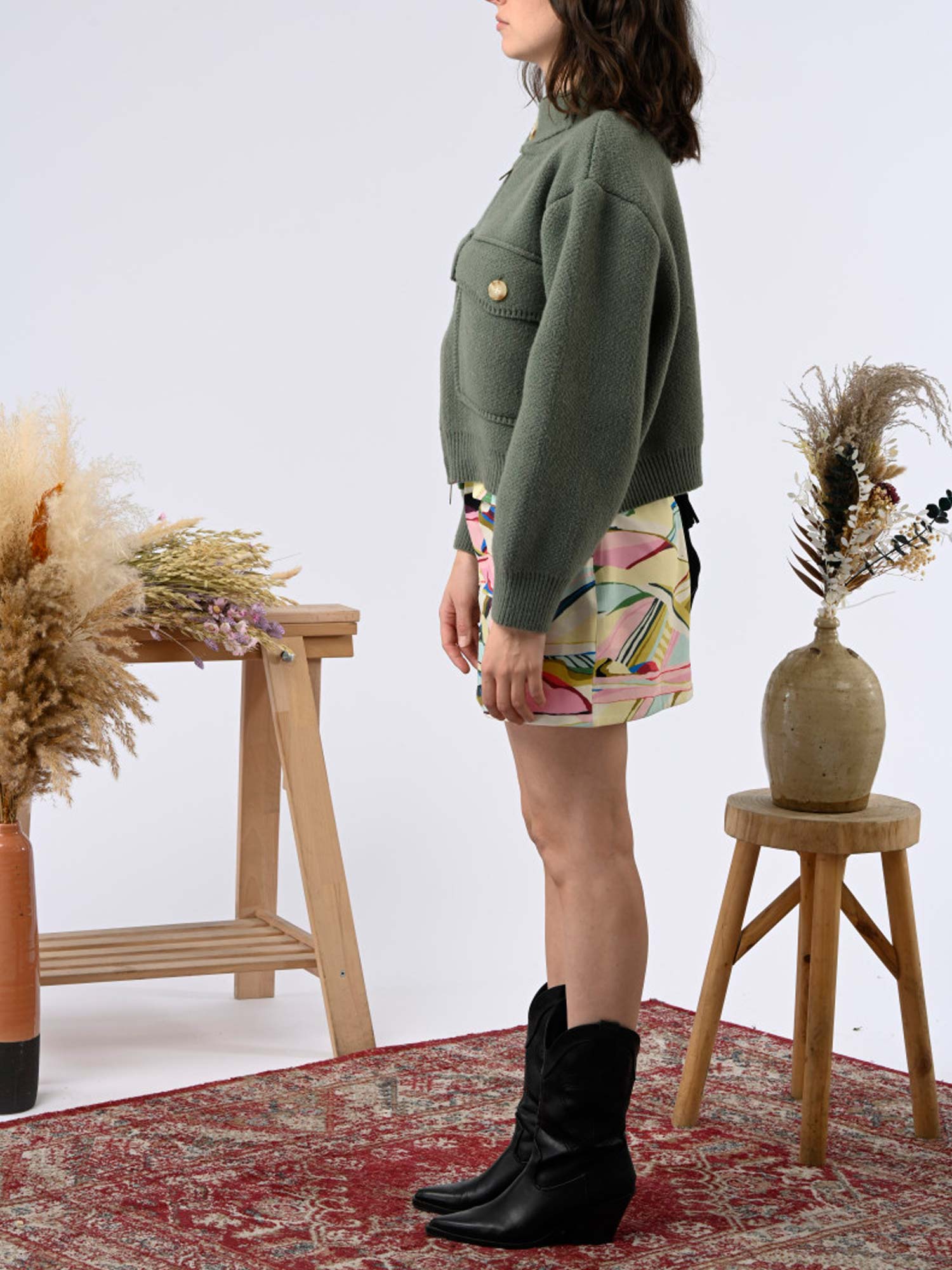 Chaqueta de punto gruesa.Su corte corto y estructurado estiliza la figura, mientras que sus amplios bolsillos con solapa le aportan carácter.
